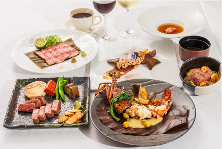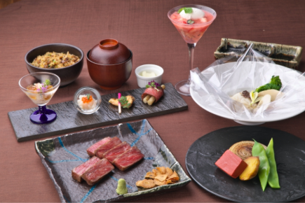 シェフが腕を振るうフレンチコースや鉄板焼きコースを提供。