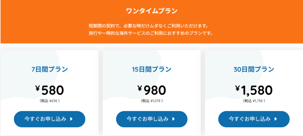 ● 短期間だけ利用できるワンタイムプラン