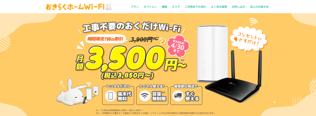 コンセントに挿すだけでインターネットが使える、手軽なホームルーターレンタルサービスのご紹介です。