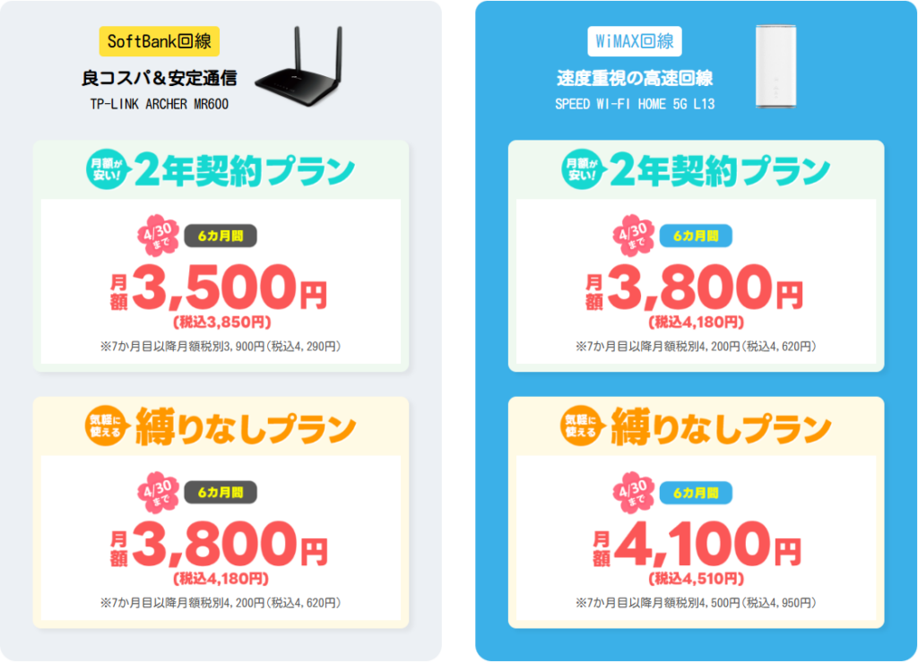 最初は縛りなしプランで利用し、長期利用を決めた後に2年プランへ変更することも可能。柔軟に利用できます。